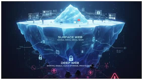 మనం రోజువారీగా ఉపయోగించే వెబ్ కేవలం కొంత భాగం మాత్రమే అని మీకు తెలుసా? ఇది సముద్రంలో తేలియాడే మంచుకొండ (Iceberg) లాంటిది. పైన శిఖరం మాత్రమే కనిపిస్తుంది. దాని లోతు దగ్గరకు వెళితే కానీ తెలియదు. అలాగే, మనం వాడుతున్న ప్రపంచవ్యాప్త వెబ్ను (World Wide Web) మూడు భాగాలుగా విభజించారు: