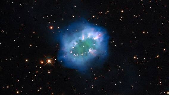 ‘చిన్న, ప్రకాశవంతమైన గ్రీన్ గ్యాస్ ప్రాంతం చుట్టూ మెరుస్తున్న కాస్మిక్ మెటీరియల్ రింగ్ ఆకారంలో చుట్టుముట్టింది. దీంతో ఇవన్నీ ఒక నెక్లెస్లోని వజ్రాల ఆకారంలో ఏర్పడ్డాయి. మిగతా ఫొటోలో కొన్ని ప్రకాశవంతమైన నక్షత్రాలు, డార్క్ రెడ్ గ్యాస్ ఉన్న బ్లాక్ స్పేస్ ఉంది.’ అని కూడా తెలిపింది.