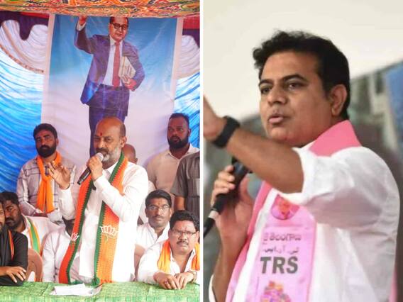 KTR Vs Bandi Sanjay : కేటీఆర్ డ్రగ్స్కు బానిస అని.. రక్త, వెంట్రుక నమూనాలిస్తే నిరూపిస్తానని తెలంగాణ బీజేపీ అధ్యక్షుడు బండి సంజ్య సవాల్ చేశారు. ప్రజా సంగ్రామ యాత్రలో భాగంగా బండి సంజయ్ నిర్మల్ జిల్లాలోని మామ్డ మండలం దిమ్మదుర్తి గ్రామంలో ప్రజలను ఉద్దేశించి ప్రసంగించారు. తాను తంబాకు తింటానని కేటీఆర్ ప్రచారం చేస్తున్నారని.. తనకు ఆ అలవాటే లేదని నిరూపిస్తా... అందుకోసం రక్త నమూనాలతో సహా నా శరీరంలోని ఏ భాగమైన పరీక్షలకు ఇస్తానని సవాల్ చేశారు. మరి కేటీార్ రక్తపు, రెండు వెంట్రుకల నమూనాలిచ్చే దమ్ముందా? అంటూ సవాల్ విసిరారు. ట్విట్టర్ టిల్లుకు తంబాకుకు, లవంగానికి కూడా తేడా తెలీదని..డాక్టర్ దగ్గరికి వెళ్లి కేటీఆర్ వి రెండు వెంట్రుకలు ఇస్తే చాలు.. డ్రగ్స్ తీసుకున్నాడో లేదో తెలుస్తుందన్నారు. ఒక బెంగళూరు డ్రగ్స్, హైదరాబాద్ డ్రగ్స్ కేసును పక్కా రీఓపెన్ చేయిస్తామని.. లంగదందాలు... దొంగ దందాలు చేస్తే .. చూస్తూ ఊరుకుంటామా? అని హెచ్చరిచారు ట్విట్టర్ టిల్లు బండారం బయటపడుతుందనే భయంతోనే బెంగళూరు, హైదరాబాద్ డ్రగ్స్ కేసులను మూసివేయించారని బండి సంజయ్ ఆరోపించారు. తక్షణమే ఆ కేసులు రీ ఓపెన్ చేసి విచారణ జరపాలని దర్యాప్తు సంస్థలను కోరారు.