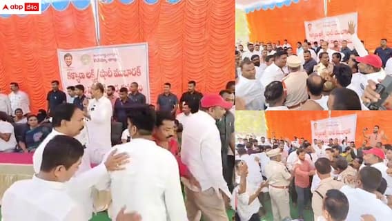 Clash Between Congress And bjp Leaders in Jagitial: జగిత్యాలలో కల్యాణలక్ష్మి చెక్కుల పంపిణీ కార్యక్రమం శనివారం రసాభాసగా మారింది. స్థానిక తహసీల్దార్ కార్యాలయంలో కల్యాణలక్ష్మి, షాదీ ముబారక్ చెక్కుల పంపిణీకి శ్రీకారం చుట్టారు. ఈ కార్యక్రమంలో ధర్మపురి ఎమ్మెల్యే, విప్ అడ్లూరి లక్ష్మణ్ కుమార్, ఎమ్మెల్సీ జీవన్ రెడ్డి, జగిత్యాల బీఆర్ఎస్ ఎమ్మెల్యే డాక్టర్ సంజయ్ కుమార్ పాల్గొన్నారు. ఈ క్రమంలో సంజయ్ కుమార్ గత ప్రభుత్వ సంక్షేమ కార్యక్రమాలు వివరిస్తుండగా కాంగ్రెస్ కార్యకర్తలు ఆయన్ను అడ్డుకున్నారు. దీంతో బీఆర్ఎస్, కాంగ్రెస్ నేతల మధ్య ఘర్షణ జరిగి తోపులాట చోటు చేసుకుంది. పోలీసులు రంగ ప్రవేశం చేసి ఇరువర్గాలను శాంతింపచేసే ప్రయత్నం చేశారు. అయినా వెనక్కు తగ్గకపోవడంతో ప్రభుత్వ విప్ అడ్లూరి లక్ష్మణ్, ఎమ్మెల్సీ జీవన్ రెడ్డి ఇరు పార్టీల కార్యకర్తలకు నచ్చజెప్పడంతో శాంతించారు.