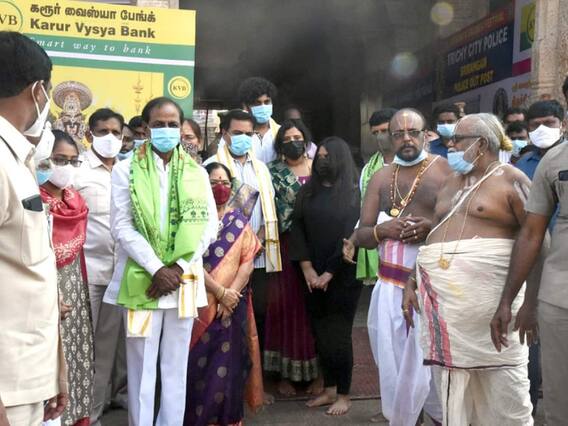 రంగనాథస్వామిని దర్శించుకోవడం సంతోషంగా ఉందని సీఎం కేసీఆర్ పేర్కొన్నారు. స్వామి వారి దర్శన అనంతరం కేసీఆర్ మీడియాతో మాట్లాడారు. శ్రీరంగం ఆలయ దర్శనానికి రావడం ఇది రెండోసారి అని.. డీఎంకే ప్రభుత్వం ఏర్పాటైన తర్వాత రంగనాథస్వామిని దర్శించుకోవడంతో ఇదే తొలిసారి అని చెప్పారు. రేపు సాయంత్రం తమిళనాడు సీఎం స్టాలిన్తో సమావేశం అవుతానని కేసీఆర్ ప్రకటించారు.