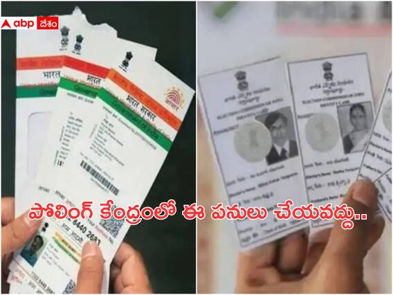 పోలింగ్ కేంద్రానికి వెళ్లేవారు పార్టీలకు సంబంధించిన ఎన్నికల గుర్తులు ప్రదర్శించకూడదు. పార్టీల గుర్తులు కలిగి ఉండే దుస్తులు ధరించరాదు. పార్టీల రంగును సూచించే దుస్తులు సైతం వేసుకోకూడదు. టోపీలు ధరించకూడదు. మొబైల్ ఫోన్లు, కెమెరాలు, ఇతర గాడ్జెట్లను పోలింగ్ కేంద్రంలోనికి అనుమతించరు. పార్టీల గుర్తులను సైతం చూపించడం లాంటి పనులు చేయకూడదు. ఓటు వేయడానికి వెళ్లేవారు ఏదైనా ఒక గుర్తింపు కార్డును పోలింగ్ కేంద్రానికి తీసుకెళ్లాలని ఈసీ సూచించింది. ఫొటో ఓటరు స్లిప్ ఓటింగ్ కోసం అవసరమయ్యే గుర్తింపు డాక్యుమెంట్ గా పరిగణించరు. ఓటర్లు దిగువ పేర్కొన్న గుర్తింపు కార్డులలో ఏదైనా ఒకటి తీసుకెళితే చాలు.