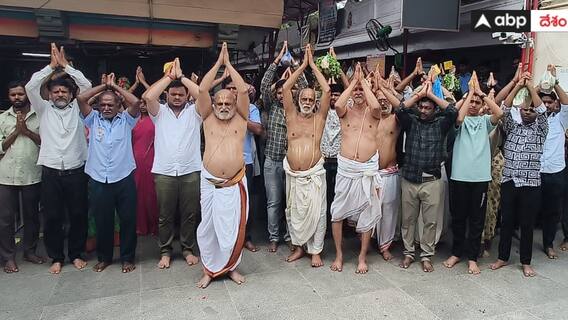 Devotees Prayers at Chilkur Balaji Temple | మొయినాబాద్: రంగారెడ్డి జిల్లా మొయినాబాద్ మండలంలోని చిలుకూరులో ఉన్న వెంకటేశ్వర స్వామి చాలా పవర్ ఫుల్ అని భక్తులు నమ్ముతారు. కోరిన కోర్కెలె తీర్చే స్వామిగా చిలుకూరు బాలాజీ ఆలయానికి భక్తులు పెద్ద ఎత్తున తరలివస్తుంటారు. ఇక్కడ మొక్కుకుంటే వీసా తొందరగా వస్తుందని, ఇక్కడి స్వామి వారిని వీసా బాలాజీ అని కూడా పిలుస్తారు. ప్రస్తుతం తెలుగు రాష్ట్రాల్లో భారీ వర్షాలు, వరదల ముప్పుతో కొన్ని జిల్లాల్లో జనజీవనం అస్తవ్యస్తమైంది. ఏపీ, తెలంగాణ రాష్ట్రాలను భారీ వర్షాలు, వరదలు, తుపానుల నుంచి రక్షించాలని చిలుకూరు బాలాజీని భక్తులు ప్రార్థించారు. ఇందుకోసం చిలుకూరు బాలాజీ ఆలయ పూజారులతో కలిసి భక్తులు రెండు అదనపు ప్రదక్షిణలు చేశారు. వరద బాధితులకు సహాయార్థం అన్ని విధాలుగా సహకరించిన వారికి స్వామివారి ఆశీస్సులు ఉండాలని ప్రార్థించారు.