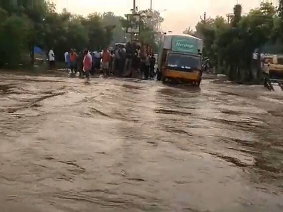 రాత్రి కురిసిన వర్షానికి గుండ్లపోచం పల్లి చెరువు నిండిపోయింది. చెరువు అలుగుపోస్తుండటంలో రోడ్డుపై నుంచి నీరు ప్రవహిస్తుంది. శామీర్పేట మండలంలోని తూంకుంటలో భారీ వర్షానికి ఓ ప్రైవేటు పాఠశాల నీట మునిగింది. తరగతి గదుల్లో వర్షపు నీరు ప్రవేశించింది. హైదరాబాద్తోపాటు చుట్టుపక్కల జిల్లాల్లో బుధవారం రాత్రి 10 గంటలకు ప్రారంభమైన వర్షం అర్ధరాత్రి 12.30 గంటల వరకు ఎడతెరపి లేకుండా పడింది. దీంతో లోతట్టు ప్రాంతాలు నీట మునిగాయి.