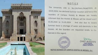 Telangana News: హైదరాబాద్లో రోజురోజుకు నీటి కొరత తీవ్రం అవుతోంది. ఇప్పుడు దాని ప్రభావం ఉస్మానియా యూనివర్శిటీపై పడింది. నీటి కొరత కారణంగా ఉస్మానియా యూనివర్శిటీ హాస్టల్స్ మూసివేస్తున్నట్టు వార్డెన్ ప్రకటన జారీ చేశారు. మే ఒకటో తేదీ నుంచి హాస్టల్స్, మెస్ మూసివేస్తున్నట్టు ఓ ప్రకటన వెలువడింది. ఈ ప్రకటన సోషల్ మీడియాలో వైరల్గా మారుతోంది.