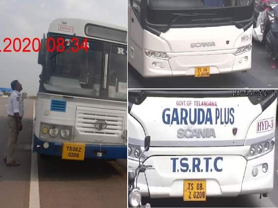 ప్రభుత్వానికి చెందిన బస్సుల్లో ఇలాంటి మాయాజాలం కనిపించడం ఆశ్చర్యానికి గురి చేస్తోంది. గరుడ ప్లస్, ఎక్స్ప్రెస్ సహా మరో ఏసీ బస్సుకు ఒకే నెంబర్ ఉంది. ఈ విషయం బయటికి ఎలా వచ్చిందంటే.. ఆ మూడు బస్సుల మీద ఫైన్లు ఉన్నాయి. ఆ బస్సు నెంబరుతో ఈ-చలానా వెబ్సైట్లో వెతకగా.. ఏకంగా మూడు బస్సులు వివిధ చోట్ల ట్రాఫిక్ నిబంధనలు మీరినట్లు ఫలితం వచ్చింది. వాటికి సంబంధించిన ఫోటోలు కూడా ఉన్నాయి. హైదరాబాద్ వన్ డిపోలో టీఎస్ 08 Z 0208 నంబర్తో ఉన్న బస్సు ఎక్స్ప్రెస్ సర్వీస్గా నడుస్తోంది. హైదరాబాద్ 3 డిపోలోని గరుడ ప్లస్ సర్వీస్ కూడా అదే నంబర్పై తిరుగుతుంది. అంతేకాక, ఇంకో స్కానియా కంపెనీకి చెందిన మరో ఏసీ బస్సు కూడా ఇదే నెంబరుతో ఉంది.