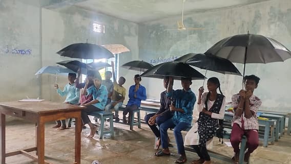 Telangana News: మంచిర్యాల జిల్లా నెన్నెల మండలం కృష్ణపల్లి జిల్లా పరిషత్ సెకండరీ పాఠశాలలోని విద్యార్థులు గొడుగులతోనే చదువుకోవాల్సిన దుస్థితి నెలకొంది. గత వారం రోజుల నుంచి ఎకధాటిగా కురుస్తున్న భారీ వర్షాలతో పాఠశాలలోని భవనం లోపలి భాగం నుంచి నీళ్లు కురుస్తున్నాయి. ఈ పాఠశాలలో మొత్తం 54 మంది విద్యార్థులు చదువుకుంటున్నారు. పాఠశాల భవనం లోపలి భాగంలో వర్షపు నీరు కురుస్తుండటంతో విద్యార్థులు ఉపాధ్యాయులు గొడుగులు పట్టుకోవాల్సి వస్తుంది. అది పురాతన భవనం అని.. పైకప్పు దెబ్బతిన్నదని ఉపాధ్యాయులు చెబుతున్నారు.