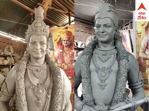 Sr NTR Statue At Lakaram Lake in Khammam: శ్రీకృష్ణుడి వేషధారణలో ఉన్న నందమూరి తారకరామారావు విగ్రహం ఇప్పుడు ఖమ్మం లకారం అందాలలో బాగం కానుంది. వచ్చే ఏడాది ఎన్టీఆర్100వ జయంతి సందర్భంగా ఈ విగ్రహాన్ని ఏర్పాటు చేసేందుకు అధికారులు చర్యలు తీసుకుంటున్నారు. ఇప్పటికే విగ్రహం తయారీ పనులు పూర్తి కావస్తున్నాయి. రోజురోజుకు అభివృద్ధిలో దూసుకెళుతున్న ఖమ్మం నగరానికి లకారం ట్యాంక్ బండ్ మణిహారంలా మారింది. నగర ప్రజలకు అహ్లాదాన్ని అందిస్తుంది. ఇప్పటికే తీగల వంతెనకు స్థానికుల నుంచి మంచి ఆదరణ లభిస్తుండగా ఇప్పుడు లకారం అందాలలో ఎన్టీఆర్ విగ్రహం కనువిందు చేయనుంది. ఖమ్మం నగరానికి చెందిన ఎన్ఆర్ఐలు, రవాణాశాఖ మంత్రి పువ్వాడ అజయ్కుమార్ చొరవతో ఈ విగ్రహం ఏర్పాటు కోసం ప్రత్యేకంగా ఒక కమిటీని ఏర్పాటు చేశారు. ప్రభుత్వం నుంచి అనుమతులు మంజూరు కావడంతో 2023 మే 28న ఎన్టీఆర్ 100వ జయంతి సందర్భంగా ఈ విగ్రహాన్ని ఆవిష్కరించేందుకు కమిటీ ఏర్పాట్లు పూర్తి చేస్తుంది.54 అడుగుల భారీ విగ్రహం..శ్రీకృష్ణుడి వేషధారణలోని 54 అడుగుల భారీ విగ్రహాన్ని నిర్వాహకులు ఏర్పాటు చేయనున్నారు. హైదరాబాద్లోని ట్యాంక్బండ్ తరహాలోనే లకారం ట్యాంక్బండ్లో తీగల వంతెన సమీపంలో ఈ విగ్రహాన్ని ఏర్పాటు చేయనున్నారు. బేస్మెంట్తో కలిపి 34 అడుగుల ఎత్తు ఉండే విగ్రహాన్ని ఎటు చూసినా 36 అడుగుల బేస్మెంట్ను ఏర్పాటు చేయనున్నారు. లకారం ట్యాంక్ బండ్ మద్యలో ఈ విగ్రహం ఉండేలా ప్రణాళికలు రూపొందించారు. పౌరాణిక గాధలకు ప్రాణం పోసి తెలుగు ప్రేక్షకులకు దేవుడిలా మారిన నందమూరి తారకరామారావు విగ్రహం ఇక్కడ శ్రీ కృష్ణుడి అవతారంలో పర్యాటకులను ఆకర్షించనుంది. రూ.2.3 కోట్ల వ్యయంతో..ఎన్టీఆర్ విగ్రహాన్ని ఏర్పాటు చేసేందుకు రూ.2.3 కోట్లు వెచ్చిస్తున్నారు. ఖమ్మం నగరానికి చెందిన ఎన్ఆర్ఐలతోపాటు స్థానికంగా ఉన్న నేతలు, మంత్రి పువ్వాడ అజయ్కుమార్ నేతృత్వంలో ఈ విగ్రహాన్ని ఏర్పాటు చేసేందుకు కమిటీని ఏర్పాటు చేశారు. ఈ కమిటీ ఆధ్వర్యంలో విగ్రహాన్ని రూపొందిస్తున్నారు. నిజామాబాద్కు చెందిన వర్మ అనే చిత్రకారుడు ఈ విగ్రహాన్ని రూపొందిస్తున్నారు. మే 28న జూనియర్ ఎన్టీఆర్ చేతుల మీదుగా ఈ విగ్రహాన్ని ఆవిష్కరించేందుకు ఏర్పాట్లు చేస్తున్నారు. ఈ విగ్రహం ఏర్పాటు చేస్తే ఇప్పటికే ఖమ్మం నగరానికి కొత్త అందాలను తెచ్చిన లకారం ట్యాంక్ బండ్లో శ్రీ కృష్ణుడి వేషదారణలో ఉన్న ఎన్టీఆర్ పర్యాటకులను ఆకర్షించనున్నారు. Also Read: Weather Updates: బీ అలర్ట్, తెలుగు రాష్ట్రాల్లో మరో 2 రోజులు వర్షాలు - ఎల్లో అలర్ట్ జారీ చేసిన వాతావరణ శాఖ