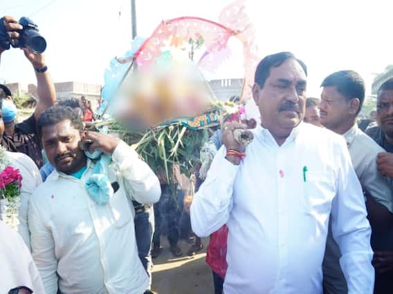 Minsiter Errabelli : వరంగల్ జిల్లా పాలకుర్తి నియోజకవర్గం కొండూరుకు చెందిన బీఆర్ఎస్ నేత గుండె రామస్వామి అంతిమయాత్రలో మంత్రి ఎర్రబెల్లి దయాకర్ రావు పాల్గొన్నారు. పాడేమోసిన ఆయన... రామస్వామితో తన అనుబంధాన్ని గుర్తుచేసుకుని కంటతడి పెట్టారు. వరంగల్ జిల్లా పాలకుర్తి నియోజకవర్గం రాయపర్తి మండలం కొండూరు గ్రామంలో బీఆర్ఎస్ పార్టీ సీనియర్ నాయకులు, వర్దన్నపేట వ్యవసాయ మార్కెట్ కమిటీ డైరెక్టర్ గుండె రామస్వామి సోమవారం ఉదయం గుండె పోటుతో మరణించారు. ఈ సమాచారం తెలిసిన వెంటనే మంత్రి ఎర్రబెల్లి దయాకర్ రావు హైదరాబాద్ నుంచి కొండూరు చేరుకున్నారు. కొండూరులో రామస్వామి అంతిమ యాత్రలో పాల్గొని పాడే మోశారు. రామస్వామితో ఉన్న అనుబంధాన్ని గుర్తుచేసుకొని కంటతడి పెట్టుకున్నారు. రామస్వామి పార్థీవ దేహానికి నివాళులు అర్పించారు. రామస్వామి కొడుకు తొర్రూరు మున్సిపాలిటీ మాజీ కమిషనర్ గుండె బాబును, కుటుంబ సభ్యులను పరామర్శించారు. గుండె రామస్వామి ఆత్మకు శాంతి చేకూరాలని భగవంతున్ని ప్రార్థించారు.