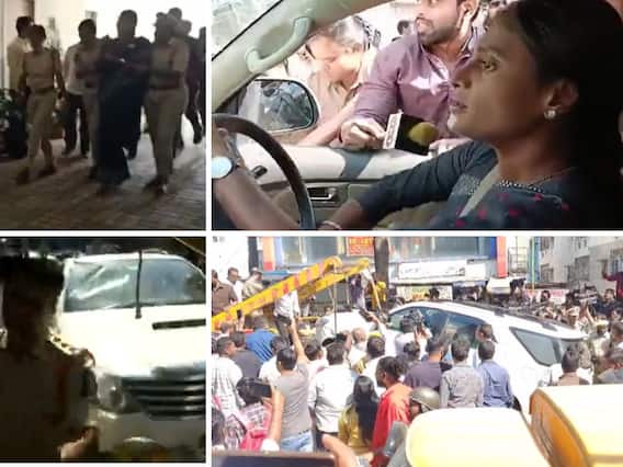 ఎస్ఆర్ నగర్ పోలీస్ స్టేషన్ వద్ద కూడా ఆమె కారు దిగడానికి నిరాకరించారు. దాంతో పోలీసులు బలవంతంగా ఆమెను కారు నుంచి దింపి స్టేషన్లోకి తీసుకెళ్లారు. వీఐపీ జోన్లో ట్రాఫిక్కు అంతరాయం కలిగించినందుకు మూడు సెక్షన్ల కింద కేసులు పెట్టారు.
