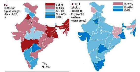 తెలంగాణలోని దాదాపు గ్రామాలన్నీ బహిరంగ మల, మూత్రవిసర్జన రహిత విభాగంలో చేరాయి. తాజాగా మార్చి 12, 2023 నాటికి పూర్తిచేసిన కేంద్ర ప్రభుత్వ 4 సర్వేల ప్రకారం బహిరంగ మల మూత్ర విసర్జన రహిత (ఓ డి ఎఫ్ +), స్వచ్ఛ సర్వేక్షణ రెండు విభాగాల్లో రాష్ట్రంలోని 12,769 గ్రామపంచాయతీల్లో నూటికి నూరు శాతం స్వచ్ఛత సాధించింది తెలంగాణ! ఈ రెండు విభాగాల్లోనూ మొదటి 5 రాష్ట్రాల్లో మొదటి రాష్ట్రంగా ఉంది. ఈ విషయాన్ని స్వచ్ఛ భారత్ మిషన్ అధికారులు ప్రకటించారు. రాష్ట్రంలోని పంచాయతీరాజ్ అధికారులు గ్రామాల్లో ఉన్న వసతులు, మౌలిక సదుపాయాల వివరాలను అప్డేట్ చేశారు.