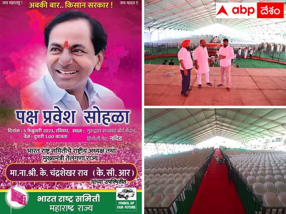 BRS Nanded Meeting : జాతీయ పార్టీగా మారిన తర్వాత బీఆర్ఎస్ తెలంగాణ వెలుపల తొలి బహిరంగసభను నాందెడ్లో నిర్వహిస్తున్నారు. మహారాష్ట్రలో భాగం అయిన నాందేడ్.. తెలంగాణ సరిహద్దుల్లో ఉటుంది. బీఆర్ఎస్ సభకు నాందేడ్ పట్టణం సర్వం సిద్ధమైంది. సభస్థలి వేదికను సర్వాంగ సుందరంగా ముస్తాబు చేశారు. నాందేడ్ పట్టణంతో పాటు సభస్థలికి నలుదిక్కులా కిలోమీటర్ల మేర ఆ ప్రాంతమంతా గులాబీమయంగా మారింది. వరుస క్రమంలో ఏర్పాటు చేసిన భారీ హోర్డింగులు, బెలూన్లు, స్టిక్కర్లు అందరినీ ఆకట్టుకుంటున్నాయి.