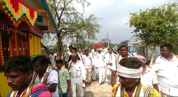 బోనం కుండలకు పసుపు, కుంకుమ రాసి, వేపమండలతో అలంకరిస్తారు. ఉదయం ప్రజలంతా ఉగాది పచ్చడి చేసుకుని తాగుతారు. మధ్యాహ్నం మందు, మాంసంతో భోజనాలు చేస్తారు. అనంతరం బోనాలు ఎత్తుకుని డప్పుచప్పుళ్లతో ఊరేగింపుగా హైస్కూల్ ఆవరణలోకి వెళతారు. రైతులు తమ ఎడ్లబండ్లను, వాహనాలను, (బైక్ , ఆటో, జీపు, లారీ, ఏది ఉంటే అది) ఓలింగా.. ఓలింగా అంటూ బోనాల చుట్టూ తిప్పుతారు.