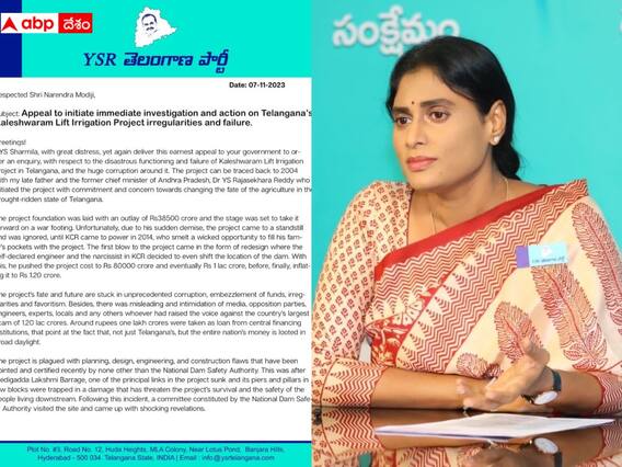 ji seeking his intervention and direct immediate investigation and action into the Kaleshwaram project’s failures and corruption. I have also expressed displeasure about the inaction on part of the BJP govt, despite so many exposures and allegations, and entire Telangana voicing concern against the project’s failures. It is our earnest appeal to him to act at least now and look into this national disaster where KCR has duped the country of Rs 1.20 lakh crore and created a white elephant to fill his pockets and swell his family’s net worth. We have been waging a relentless battle on the project issues for long and this representation is not just by YSRTP but is the voice and pain of the 4-crore Telangana people.