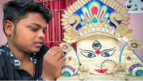 ఒడిశాలోని పూరీకి చెందిన బిస్వజీత్ నాయక్ అనే యువకుడు ఐసు పుల్లలతో అమ్మవారి బొమ్మని తయారు చేశారు. ఇది చూపర్లను ఎంతగానో ఆకట్టుకుంటోంది. 275 ఐసు పుల్లలతో అమ్మవారి ముఖాన్ని తయారు చేసి దానికి చక్కగా రంగులు అద్ది ఎంతో ఆకర్షణీయంగా తీర్చిదిద్దాడు. బిస్వజీత్ తయారు చేసిన అమ్మవారి బొమ్మను చూసేందుకు చుట్టు పక్కల వారు వస్తున్నారు. ఈ బొమ్మను తయారు చేసేందుకు బిస్వజీత్కి ఆరు రోజుల సమయం పట్టిందట. ‘మండల ఆర్ట్’తో ఈ బొమ్మను చేసినట్లు అతడు చెప్పాడు. ఈ బొమ్మ ఎత్తు అడుగు కంటే తక్కువే.