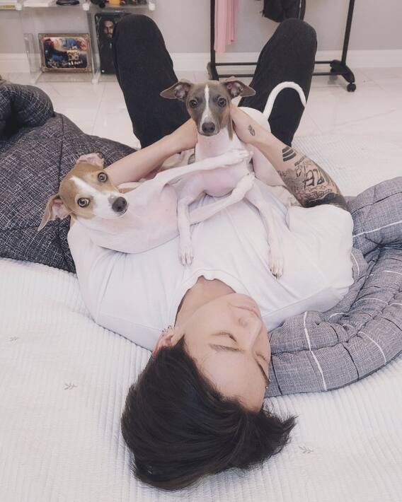 ఫ్లోర్పై పడుకుని తన కుక్కలను పట్టుకున్న ఫొటోను ఇన్స్టాలో పోస్ట్ చేశాడు జాంగ్కుక్. దీనికే మిలియన్ల లైక్స్ వచ్చాయి.