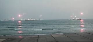 సముద్రంలో చిక్కుకున్న బాధితులను కాపాడడానికి నేవీ హెలికాప్టర్ లు రంగంలోకి దిగాయి.ఈ ఆపరేషన్ అంతా విజయవంతం గా పూర్తి కావడంతో నేవీ కి చెందిన యుద్ధ విమానాలు ఆకాశంలో విజయ విన్యాసాలు చేసాయి. ఇదంతా ఏంటి అనుకుంతున్నారా..? మరేం లేదండీ..డిసెంబర్ 4 న మనదేశ నౌకాదళం ఘనంగా జరుపుకునే నేవీ డే కోసం చేస్తున్న రిహార్సల్స్.