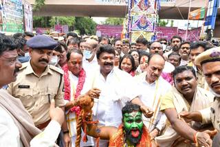 గోల్కోండ కోట బోనమెత్తింది. అషాఢ మాస బోనాల జాతర ఉత్సవాలకు అంగరంగవైభవంగా అంకురార్పణ జరిగింది. లంగర్ హౌజ్ చౌరస్తా వద్ద బంగారు బోనానికి మంత్రులు ఇంద్రకరణ్ రెడ్డి, తలసాని శ్రీనివాస యాదవ్, మహమూద్ అలీ దీపం వెలిగించి పూజలు నిర్వహించారు. జగదాంబిక అమ్మవారికి పట్టువస్త్రాలు సమర్పించారు.